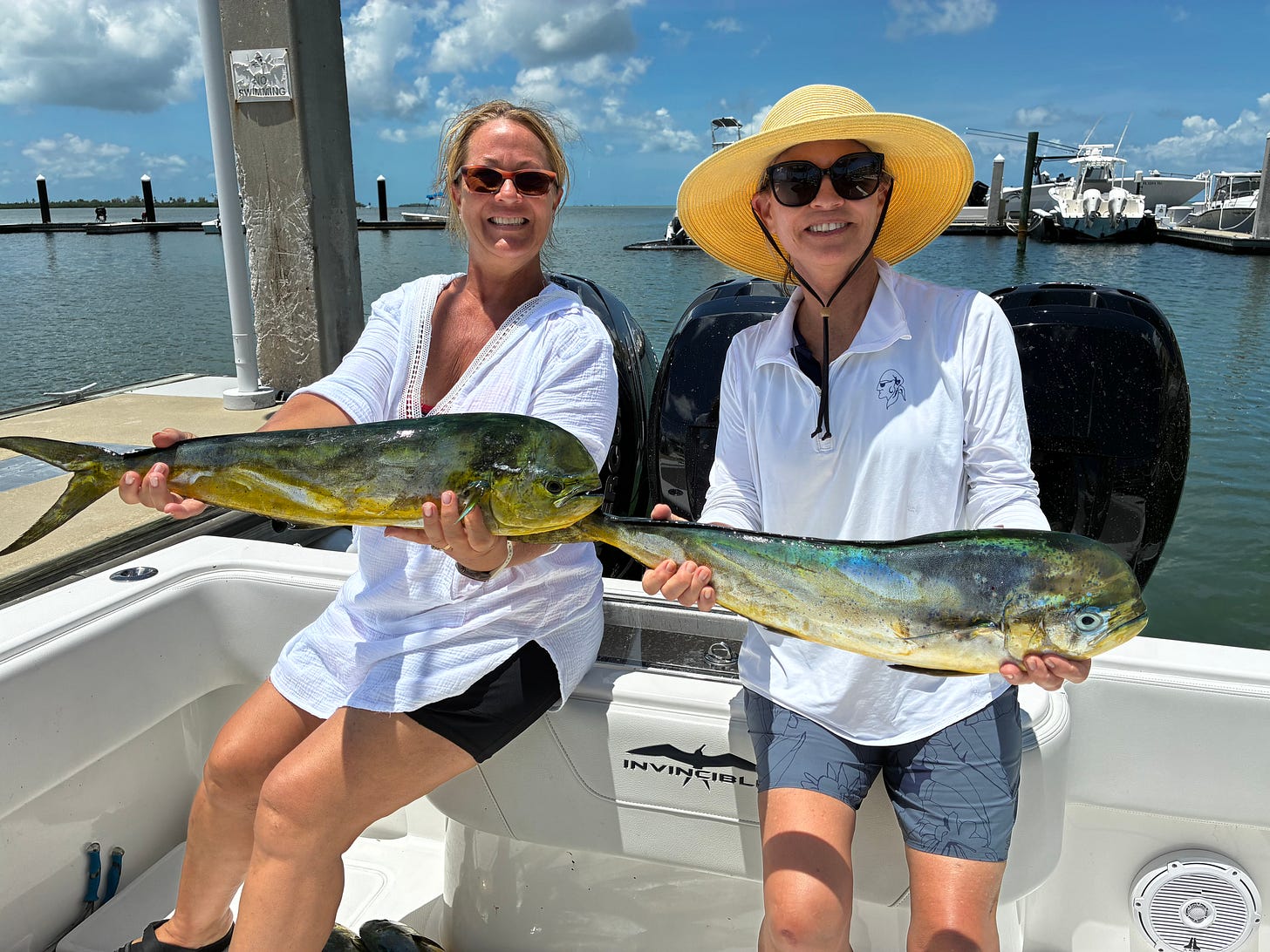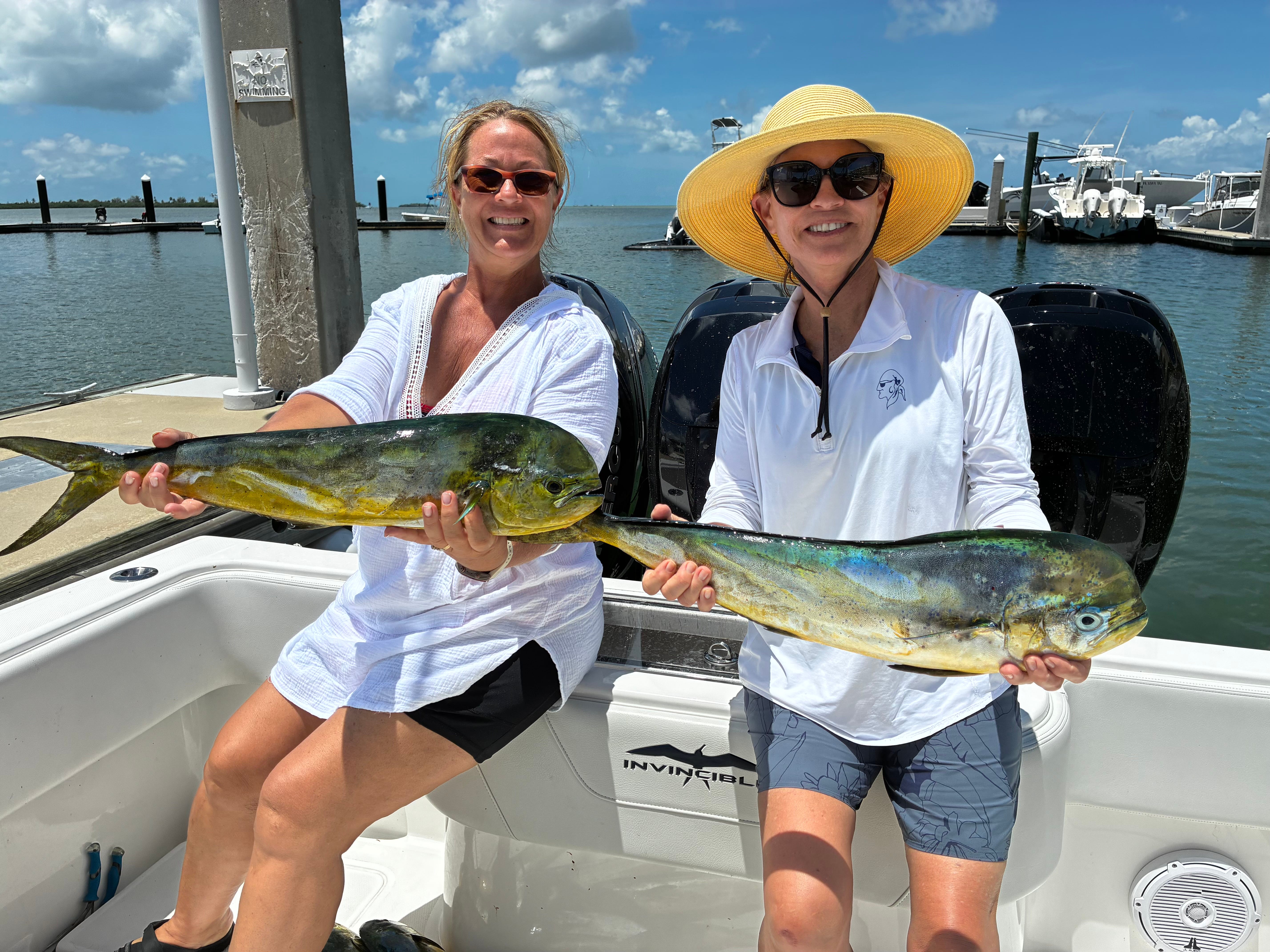 And thanks to our friends Chris and Melinda, we got in some fishing. We caught a bunch of mahi. Here’s my lovely wife hauling in the first catch of the day.